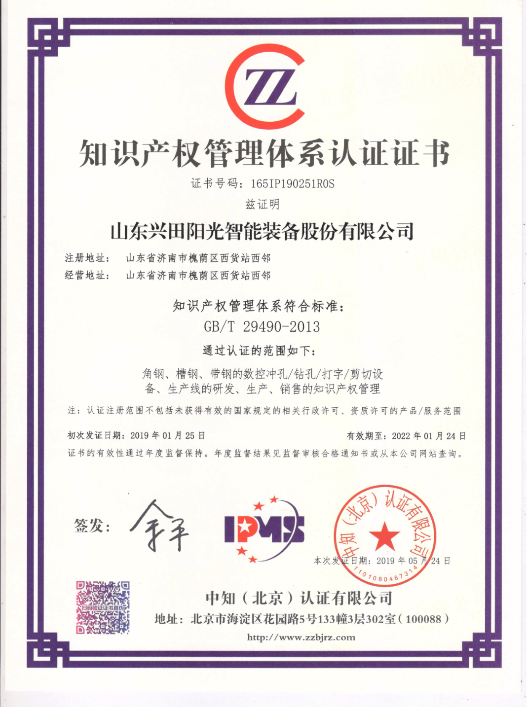 獲得了國(guó)際認(rèn)證聯(lián)盟認(rèn)證證書IQ Net,并取得知識(shí)產(chǎn)權(quán)管理體系貫標(biāo)認(rèn)證