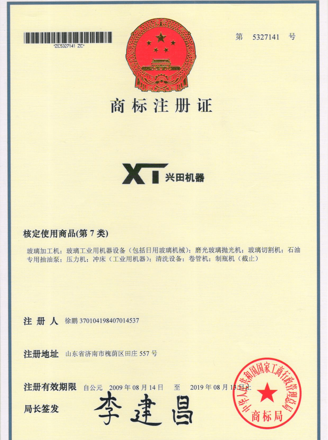 商標(biāo)注冊(cè)證