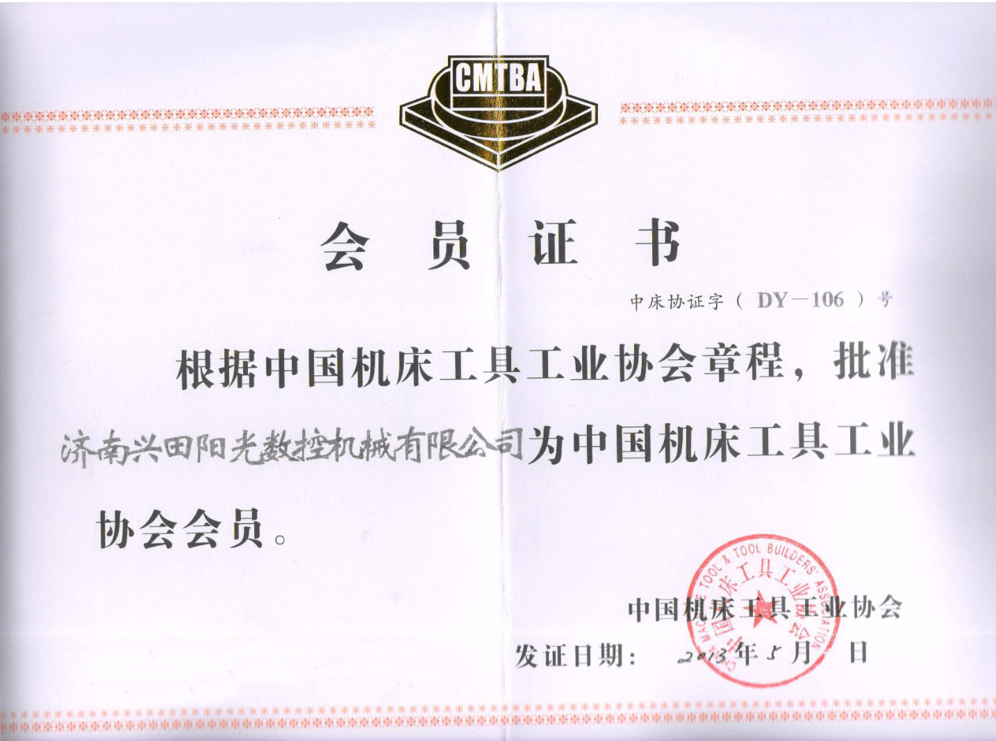 中國(guó)機(jī)床工具工業(yè)協(xié)會(huì)會(huì)員證書