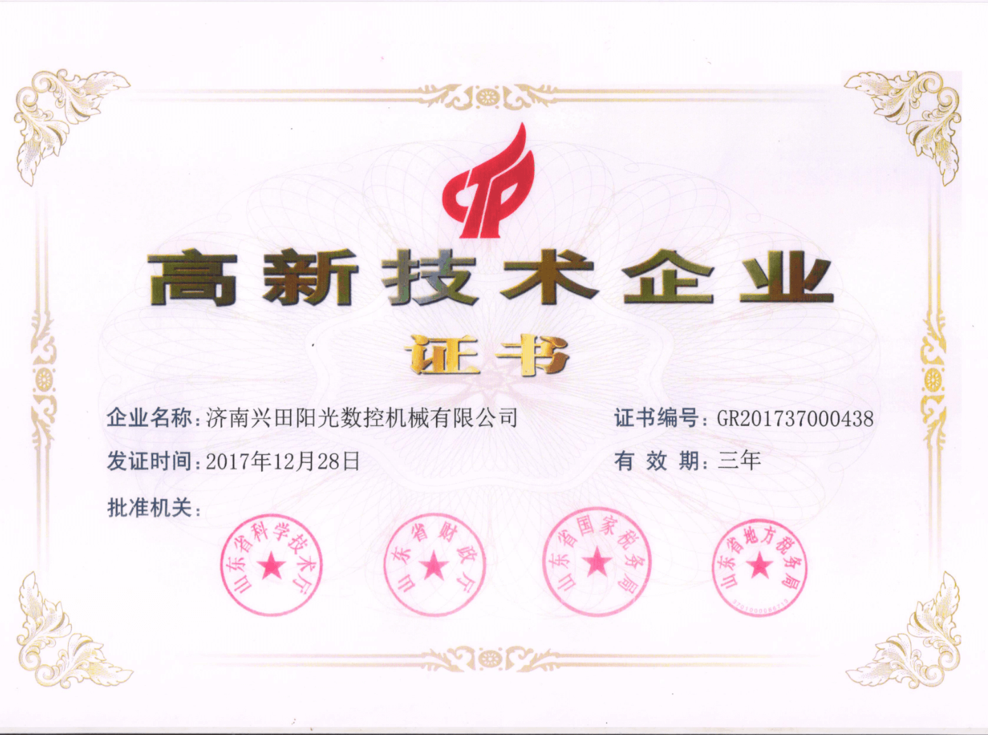 高新技術(shù)企業(yè)證書2017年度新認(rèn)定