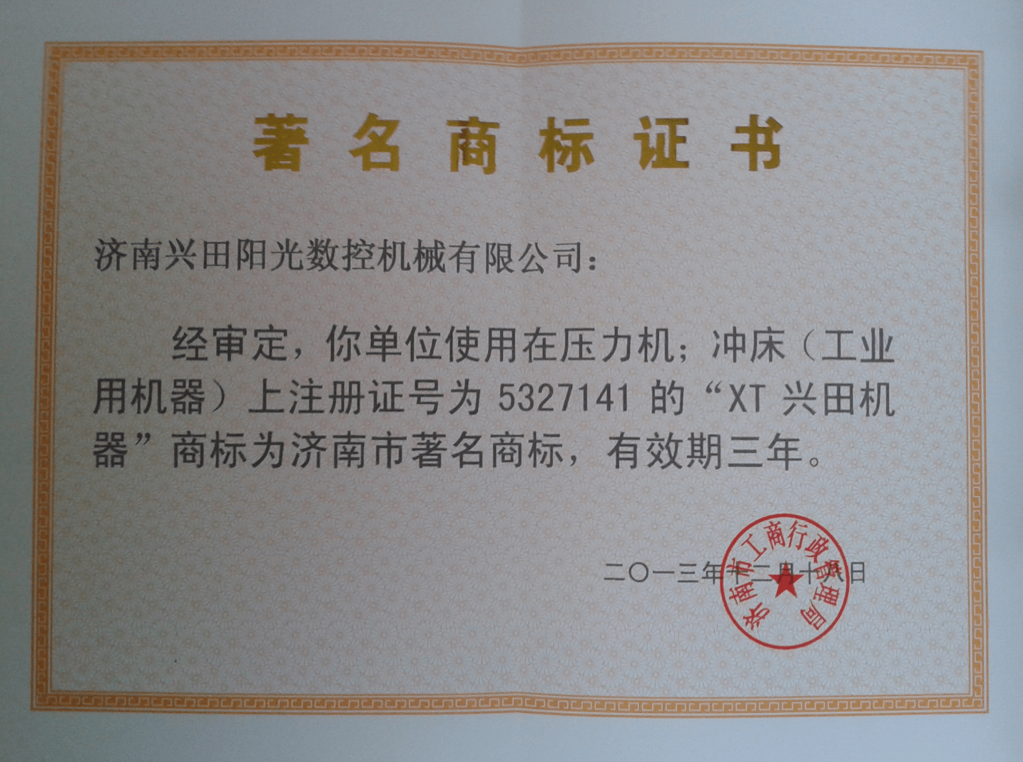 濟(jì)南市著名商標(biāo)證書